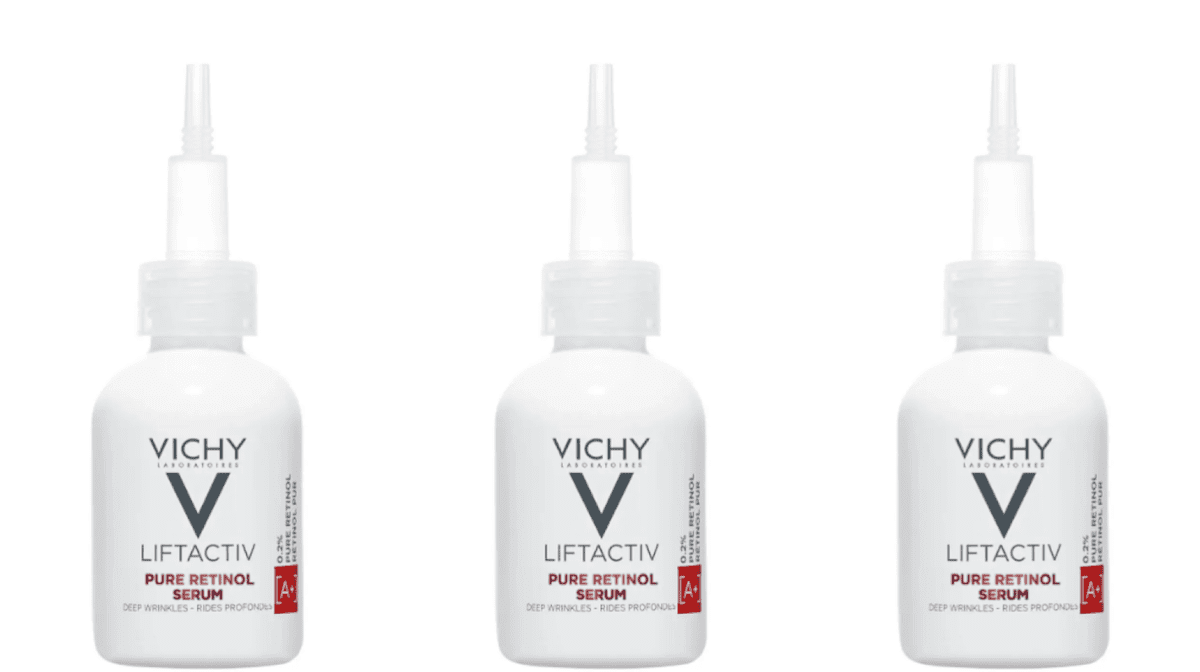 The power of Vichy’s LiftActiv Pure Retinol Serum is due to a 0.2% concentration of pure retinol that balances efficacy with minimal irritation. This unique formulation also includes peptides, which are the building blocks of collagen that work to visibly reduce wrinkles and firm the skin. This innovative retinol serum also features hydrating glycerin and provides skin-barrier support with vitrioscilla ferment, a nutrient-rich extract of beneficial bacteria.